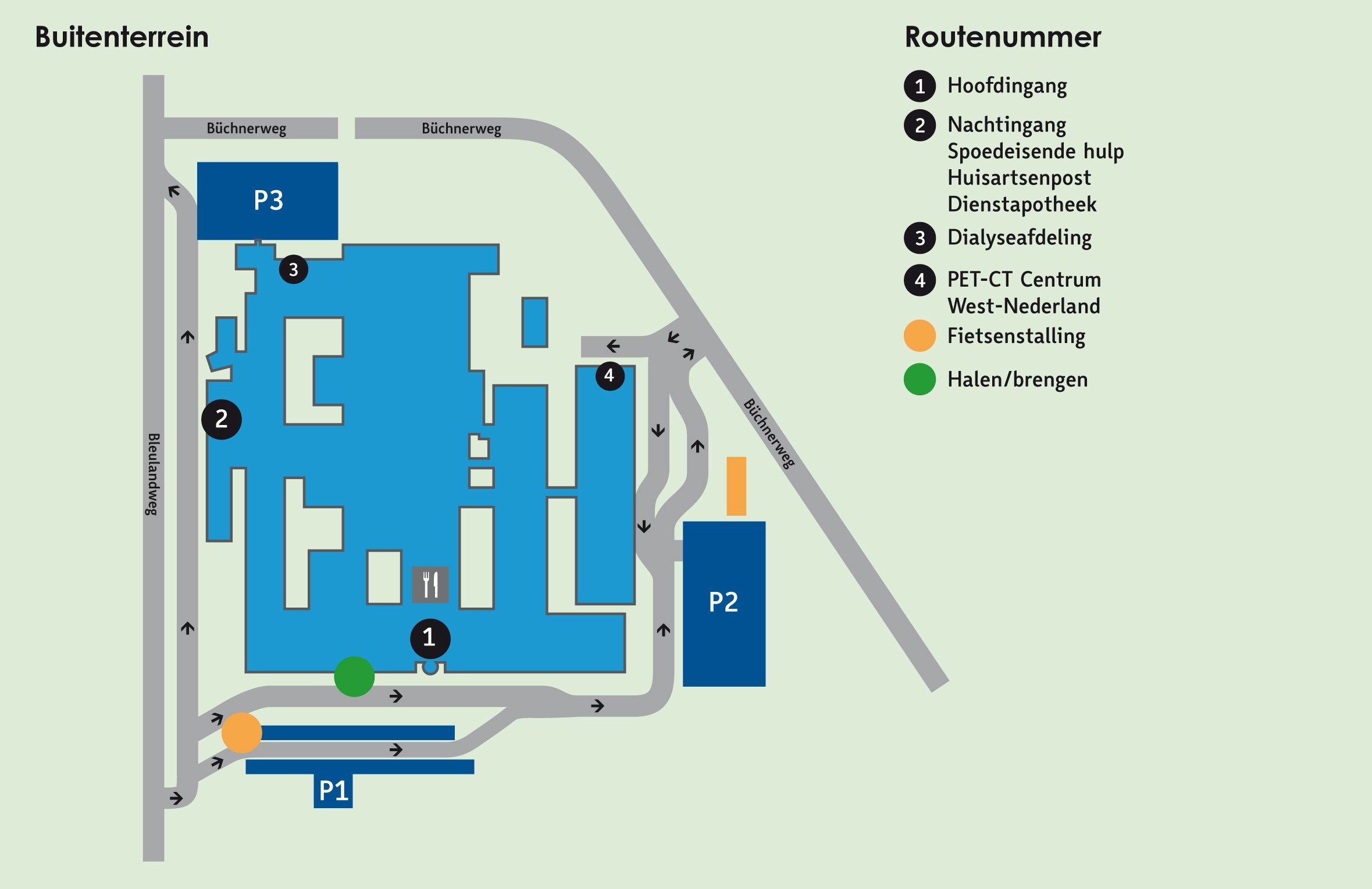 Hieronder ziet u welke ingang u wanneer het beste kunt nemen en waar u dan kunt parkeren.